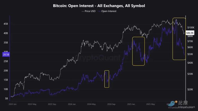 CryptoQuant分析师Abramchart指出,市场刚刚完成了一次深度的“杠杆清洗”,未平仓合约总额从450亿美元骤降至280亿美元,创下本周期最大降幅。这并非熊市信号,而更像一场市场的大换血,清除了过度膨胀的投机头寸,为后续上涨积蓄了更健康的动能。
